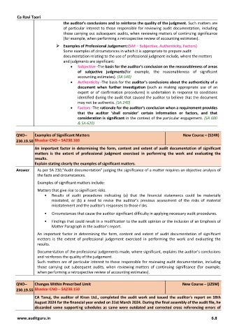 Answer As per SA 230,”Audit documentation” judging the significance of a matter requires an objective analysis of